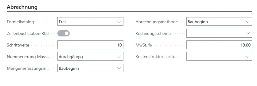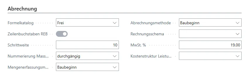 Hier definieren Sie die Schrittweite der Aufmaß Zeilen.