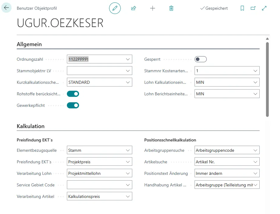 Sollte in Ihrem System eine Userbezogene Nummernserie für die Objektanlage