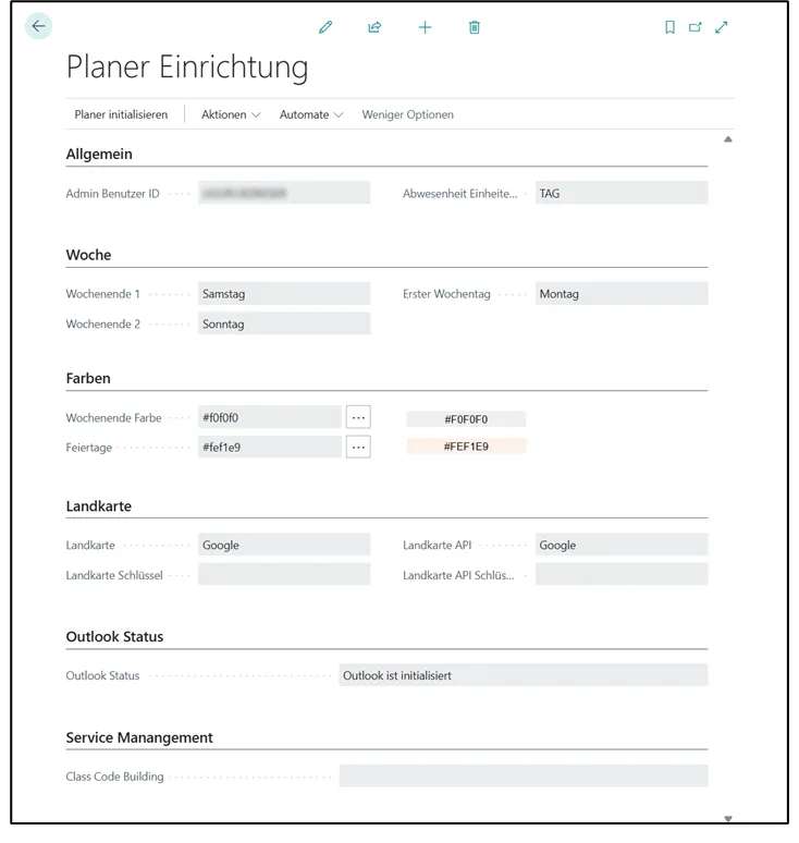 Um die Initialisierung zu starten, navigieren Sie im oberen Menü zu Planer initialisieren. Führen Sie nun die Aktion Planer initialisieren aus.