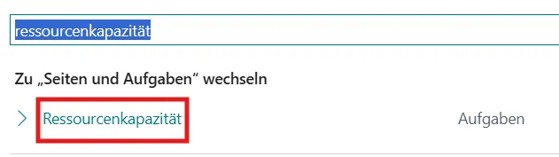 Geben Sie Ressourcenkapazität in die Suche ein und öffnen Sie den ersten Link.